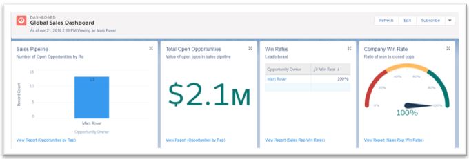 I’d be remiss if I didn’t include Dashboards on my list of Favorites. The ability to flexibly design a dashboard with the width and height that makes the most sense for each component. You can stretch components out, make them narrow and tall, whatever works best for you. The end result is you can easily create some really nice, eye catching dashboards in Lightning.